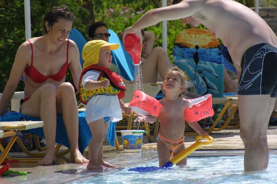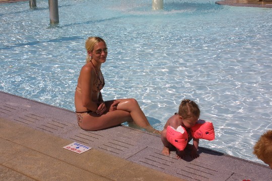 Um 4 Uhr morgens weckten mich Mama und Papa schon auf! Dafür war es dann umso lustiger im Pool!